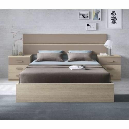Light brown wooden bedframe with two double-tone bedside drawers.