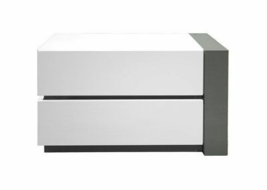 Renna Homes Design creates stylish edgy furnitures with quality finishing without compromising storage like this white colored bedside drawer with two drawers with grey color design.