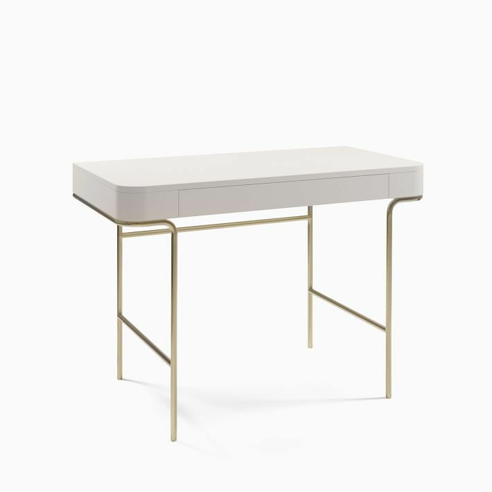 White decorative console with a gold stand.