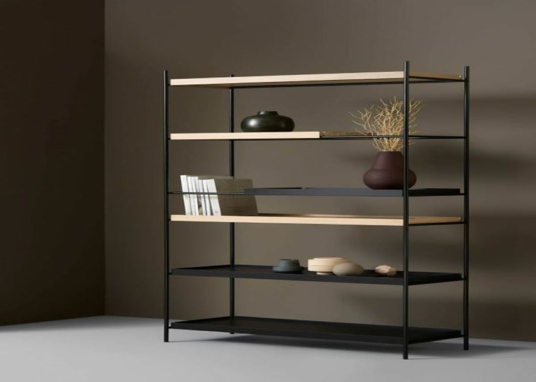 Renna Homes Design is dedicated to making unique and most functional pieces of furniture without compromising quality like this multi-level wooden and black shelve.