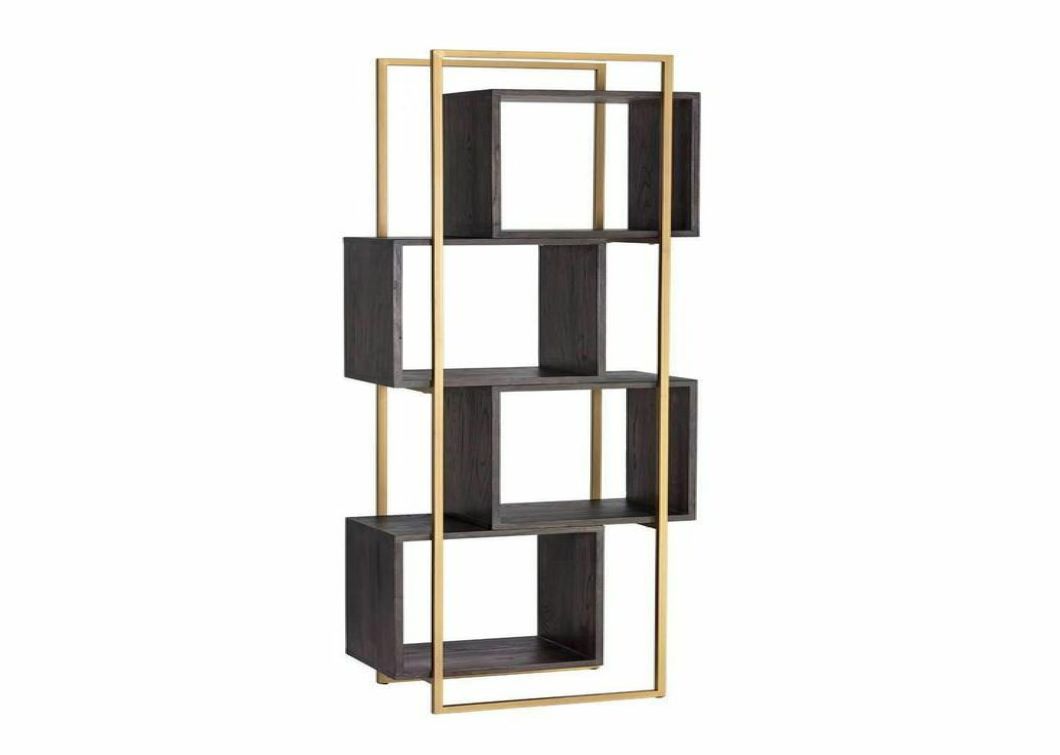 Renna Homes Design is dedicated to making unique and most functional pieces of furniture without compromising quality like this black multi-purpose shelve with gold plated stand.