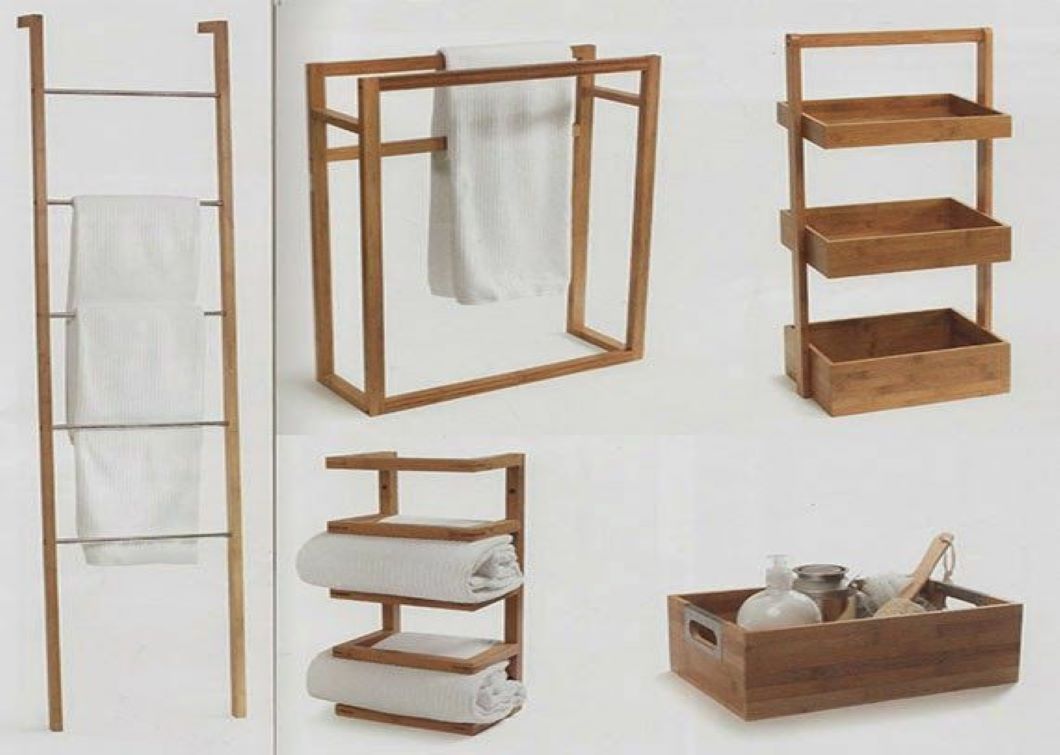 Renna Homes Design is dedicated to making unique and most functional pieces of furniture without compromising quality like this set of multi-level wooden shelve from the bathroom.
