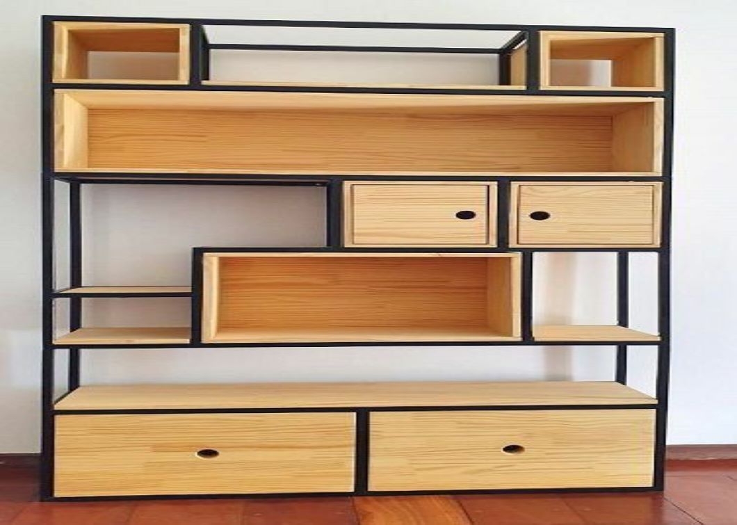 Renna Homes Design is dedicated to making unique and most functional pieces of furniture without compromising quality like this brown wooden multi-compartment shelve with black frame