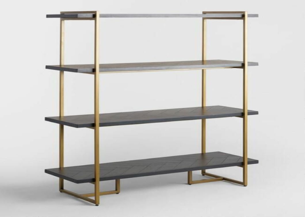 Renna Homes Design is dedicated to making unique and most functional pieces of furniture without compromising quality like this black multi-level shelve with gold plated stand.