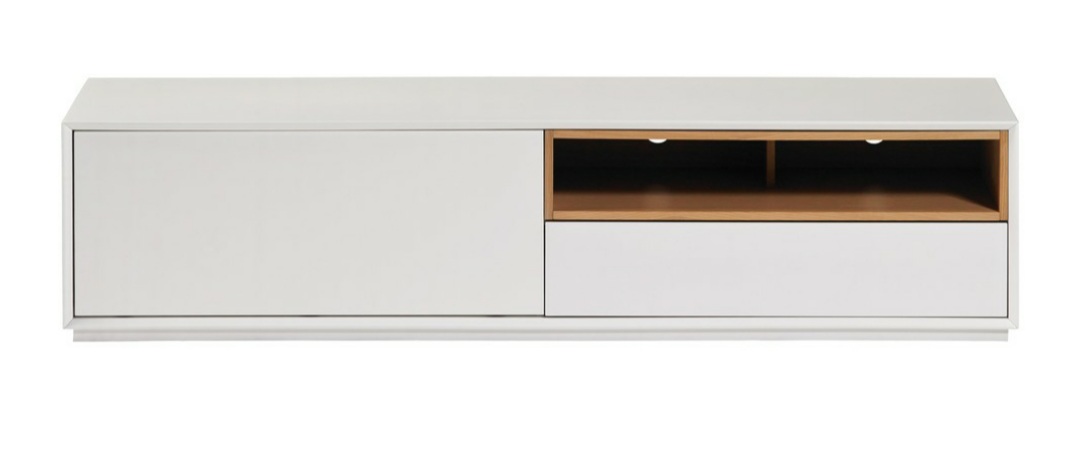At Renna Homes Design, we make durable furniture with elegant finishing without compromising on storage. We make furniture that are the focal point of your living room like this white television console with two drawers and one compartment.