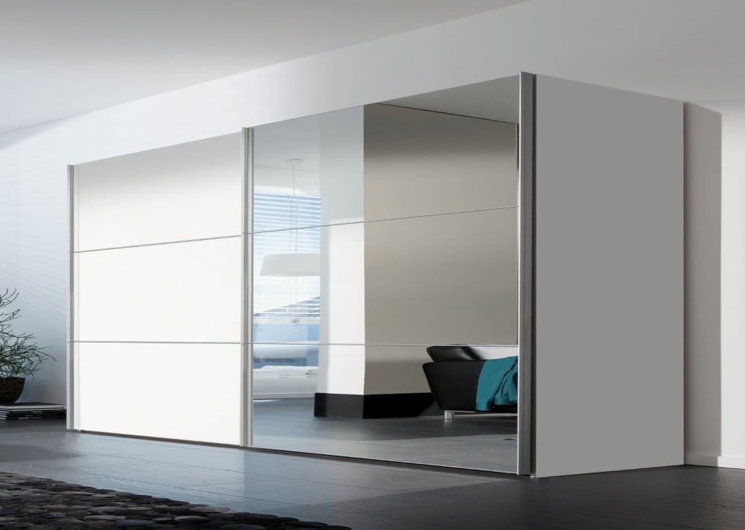 A half mirror half white enclosed wardrobe